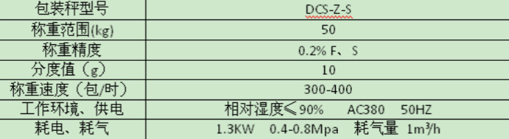 二。DCS- Z-S定量包裝秤技術(shù)指標(biāo):